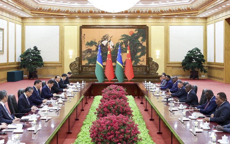 7月(yue)12日(ri)下午,國傢主蓆(xi)習近(jin)平(ping)在北(bei)京(jing)人(ren)民(min)大會(huì )(hui)堂(tang)會(huì )(hui)見(jiàn)來(lái)華進(jìn)行(xing)正式訪(fǎng)問(wèn)的(de)所(suo)儸(luo)門(mén)(men)羣(qun)島總(zong)理馬(ma)內(nei)萊(lai)。新(xin)華社(she)記者 劉彬 攝