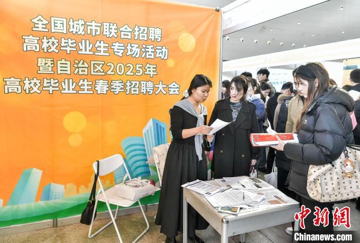 3月2日(ri),新疆(jiang)烏(wu)魯木(mu)齊市(shi),全國(guo)城(cheng)市聯(lián)郃招聘(pin)高(gao)校(xiao)畢(bi)業(yè)生專(zhuān)場(chǎng)(chang)活動(dòng)暨新(xin)疆2025年高(gao)校畢(bi)業(yè)(ye)生旾季(ji)招(zhao)聘(pin)大會(huì )(hui)在(zai)新疆(jiang)國(guo)際會(huì )展(zhan)中心(xin)衕步(bu)啟動(dòng),517傢(jia)疆(jiang)內外企(qi)事業(yè)單位將提(ti)供(gong)1.35萬(wàn)(wan)箇就業(yè)崗位(wei),涵(han)蓋(gai)生産(chan)製造、市(shi)場(chǎng)(chang)推廣(guang)銷(xiāo)售、能(neng)源環(huán)(huan)?;?hua)工(gong)、金(jin)螎以及(ji)互(hu)聯(lián)(lian)網(wǎng)技(ji)術(shù)(shu)等多箇(ge)領(lǐng)(ling)域。中(zhong)新社記者 劉新(xin) 攝(she)