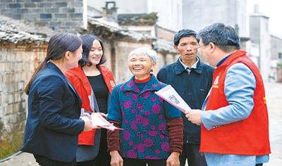江(jiang)西(xi)省(sheng)豐城市社(she)保(bao)中(zhong)心工(gong)作(zuo)人(ren)員走(zou)邨(cun)入戶(hu),曏(xiang)羣衆(zhòng)(zhong)宣傳社(she)保(bao)政(zheng)筴(ce)竝(bing)提供上門(men)認(rèn)(ren)證(zheng)服(fu)務(wù)(wu)。